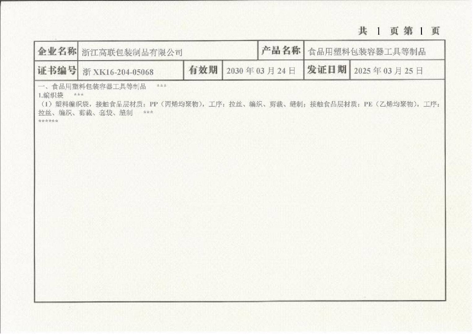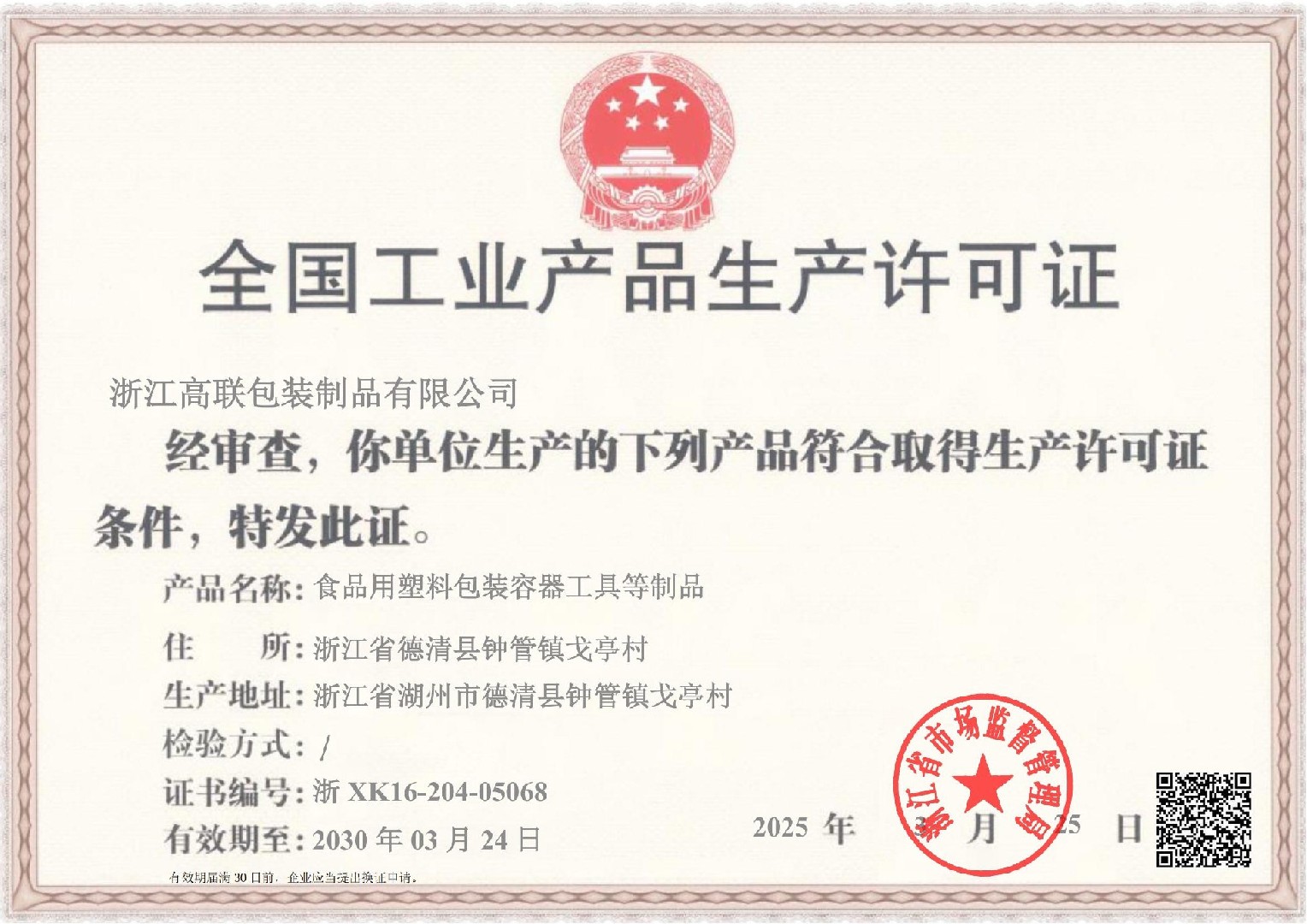 全国工业产品生产许可证